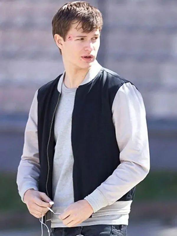 Step into effortless street style with the Baby Driver Blue and Grey Varsity Bomber Jacket, inspired by the hit action film Baby Driver. Worn by the lead character Baby and portrayed by Ansel Elgort, this jacket perfectly captures the cool, laid-back vibe that made the character iconic.