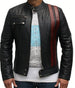 The Death Race Frankenstein Leather Jacket is produced using authentic cowhide. The coat is accessible in an exemplary dark shading that gives it a work of art and shrewd look. The Death Race Jacket has a snap tab neckline and a marked YKK zipper conclusion. The inward of the coat comprises a delicate thick covering for warmth and solace. The sleeves of the Death Race Frankenstein Leather Jacket are long and fitting with secured sleeves. To keep stuff the coat has two side midsection zipper pockets and one chest pocket. The Death Race Frankenstein Leather Jacket has two red vertical stripes on the left half of the chest. The coat is ideal for a night out with companions. The fine quality sewing makes the Death Race Frankenstein Leather Jacket tough to wear.