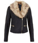 Faux Fur Collar Black Leather Jacket
