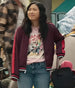 Jackpot 2024 Awkwafina Fleece Maroon Bomber Jacket : Add a splash of bold color and effortless style to your wardrobe...