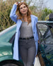 Lindsey Johnson As Luck Would Have It 2021 JoAnna Garcia Swisher Blue Woolen Trench Coat JoAnna Garcia Swisher As Luck...