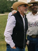 Elevate your style with Jon Avnet The Last Rodeo Black Cotton Vest, inspired by the Jon Avnet in movie The Last Rodeo. A stylish addition to any contemporary wardrobe is this black fabric vest. The vest puts together practical use with quiet style because it layers with ease. The light fabric outside and the soft viscose lining allow air to pass through, plus they feel good on the skin. A stand-up collar and a zipper closure create a neat, working shape.