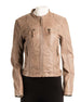 Ladies Biker Style Leather Jacket A slim-fitted biker style jacket is customary from an amazing supple Ladies Taupe Biker Style...