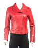 Ladies Red Stud Detail Slim Fit Biker Style Leather Jacket