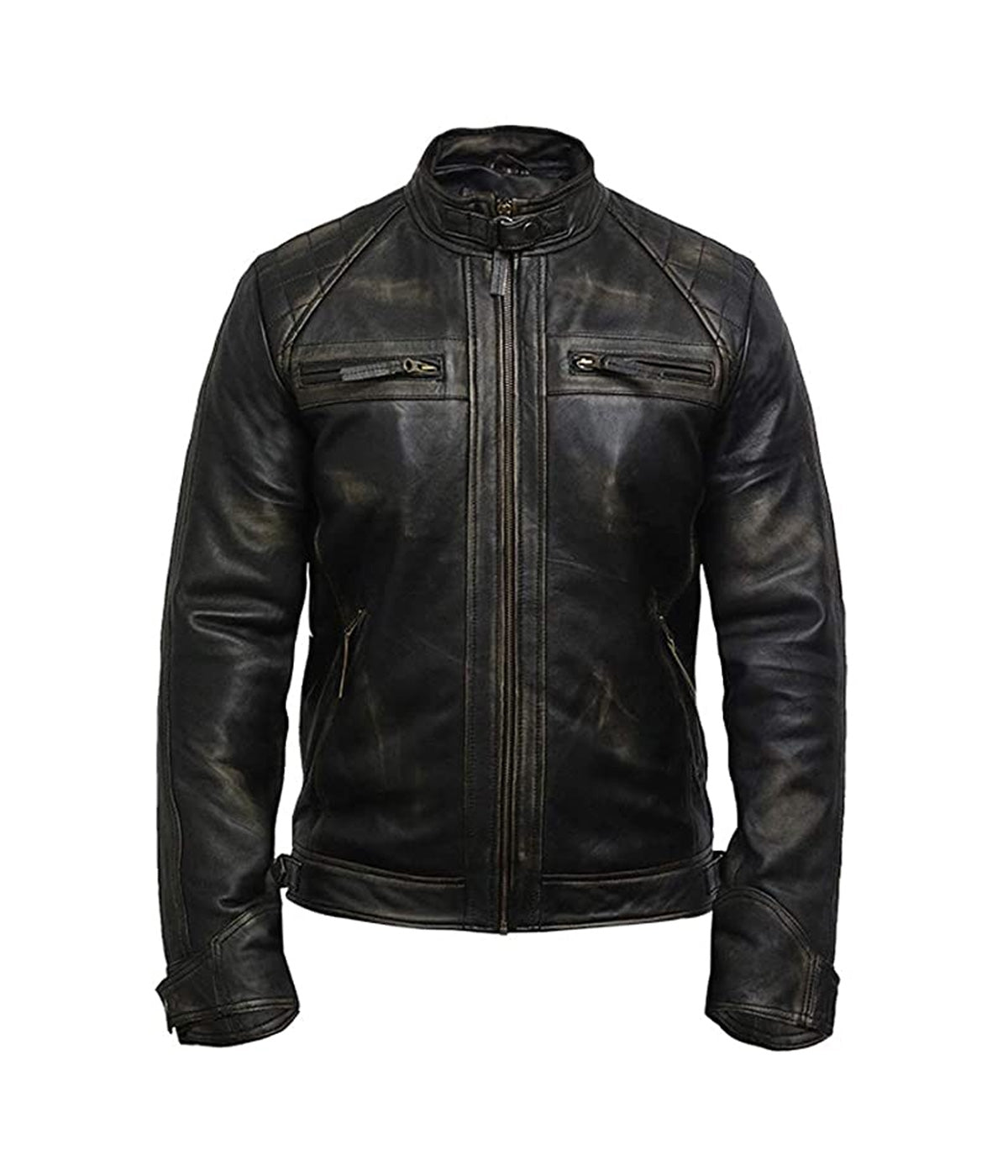 Men's Quilted Distressed Biker Jacket crafted from real sheepskin leather. Jackets that are distressed have a worn-out look because they are considered to give the wearer a tough and rugged appearance. The jackets' surface may be treated to create a wonderful distressed look. It is, nevertheless, advisable to entrust this work to a leather expert. A biker usually wears a damaged motorcycle jacket when going for a ride. They'll need to wrap their bodies in heavy-duty garments regardless of the weather, not just for safety but also to seem vintage. In today's market, distressed leather jacket prices are sky-high, and the quality is undeniable.
