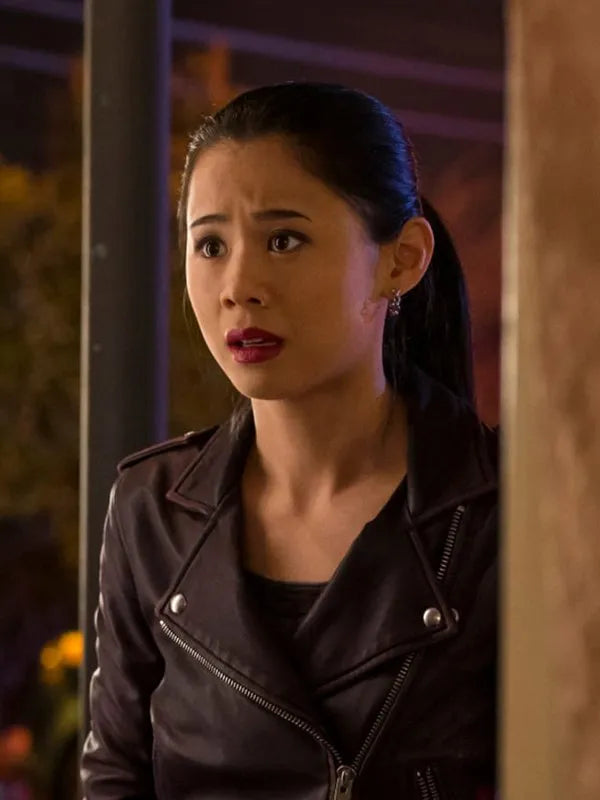 Get rid of the struggle of matching outfits, with great confidence put up George Fan Nancy Drew Leah Lewis Black Motorcycle Leather Jacket, fabricated with the splendid fabric of leather with viscose lining. Asymmetrical zipper fastening front closure and lapel collar is the prominent feature in addition to full-length sleeves with repopulates at shoulders and zipper cuffs. One zipper pocket on left, one slant pocket on the right side make it stylish and beneficial at the same time.