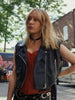 The stylish Poker Face 2023 Ruby Ruin Black Leather Biker Vest is a new fashion item that epitomizes the individual and edgy style. You should always have this Chloe Sevigny Poker Face Ruby Ruin Black Leather Vest in your closet. Since the interior is lined with soft material and the exterior is made of premium leather, it is both practical and fashionable to wear. It fits perfectly thanks to the zipper, and the lapel collar and beautiful black color accentuate the body. It can be dressed for any occasion and is ideal for layering over a t-shirt or blouse.