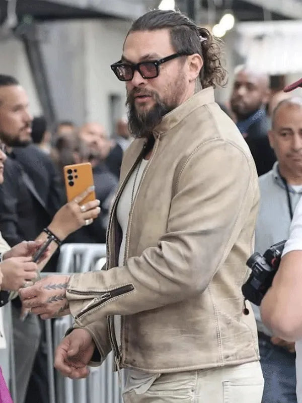 The Wrecking Crew Jason Momoa Beige Leather Jacket Unleash rugged charm and modern style with The Wrecking Crew Jason Momoa...