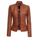 This Women's Skinny Dark Brown Distressed Leather Jacket gives ladies excitement while riding or attending various life events, and it boasts a striking appearance both indoors and out. This Dark Brown Distressed Leather Jacket is the newest addition to our huge collection. A female biker is the target audience for the brown leather jacket. They get the energetic and thrilling feeling they need for the activity while still having their body protected. A front zip fastener and a straight collar are features of the Women's Skinny Style Dark Brown Leather Jacket. There are two waist pockets with zipper openings. For added convenience, cuffs include zips. The shoulders, midsection of the sleeves, and back of the jacket all have a lovely design.