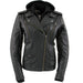 Women’s Black Vented Mc Black Leather Jacket With Removable Hoodie