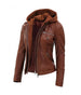Women's Hooded Brown Leather Jacket