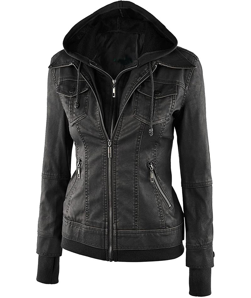 This Women's Hooded Jacket easily raises your style quotient with its sleek and elegant design. The smooth leather material is incredibly soft against your skin, giving you the impression of total comfort. Because the jacket comes in a variety of colors, you can select the one that best suits your particular style. Its adaptable design is ideal for any season, and the hood is a useful addition for protecting yourself from sudden downpours or strong winds.